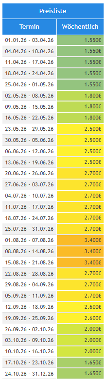 | Blister + extra security deposit 500 EUR (refundable) | 200,00 EUR pro Woche |